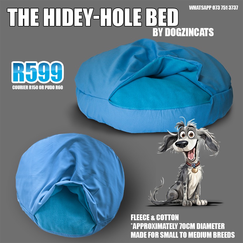 The Hidey-Hole bed is designed with the comfort and nesting instincts of dogs in mind, particularly those who love to burrow and create a cozy space for themselves. The bed features a round shape, providing a secure and enclosed environment for the dog. At the top of the bed, there is a dedicated space designed to facilitate burrowing. This unique feature allows dogs to easily slip under the top layer of the bed, providing them with a sense of security and warmth. The bed’s construction includes a removable stuffed inner layer, which adds to the overall comfort of the bed. Dog owners can easily remove the inner layer and toss the outer bed in the washing machine to keep it fresh and clean. The Hidey-Hole bed is crafted from a combination of fleece and cotton materials. Fleece provides a soft and warm texture, while cotton adds breathability to ensure the dog remains comfortable in various temperatures. The combination of these materials creates a cozy and inviting haven for dogs to snuggle into. Overall, the Hidey-Hole bed is a thoughtful and functional design, offering both comfort and convenience for both pets and their owners.