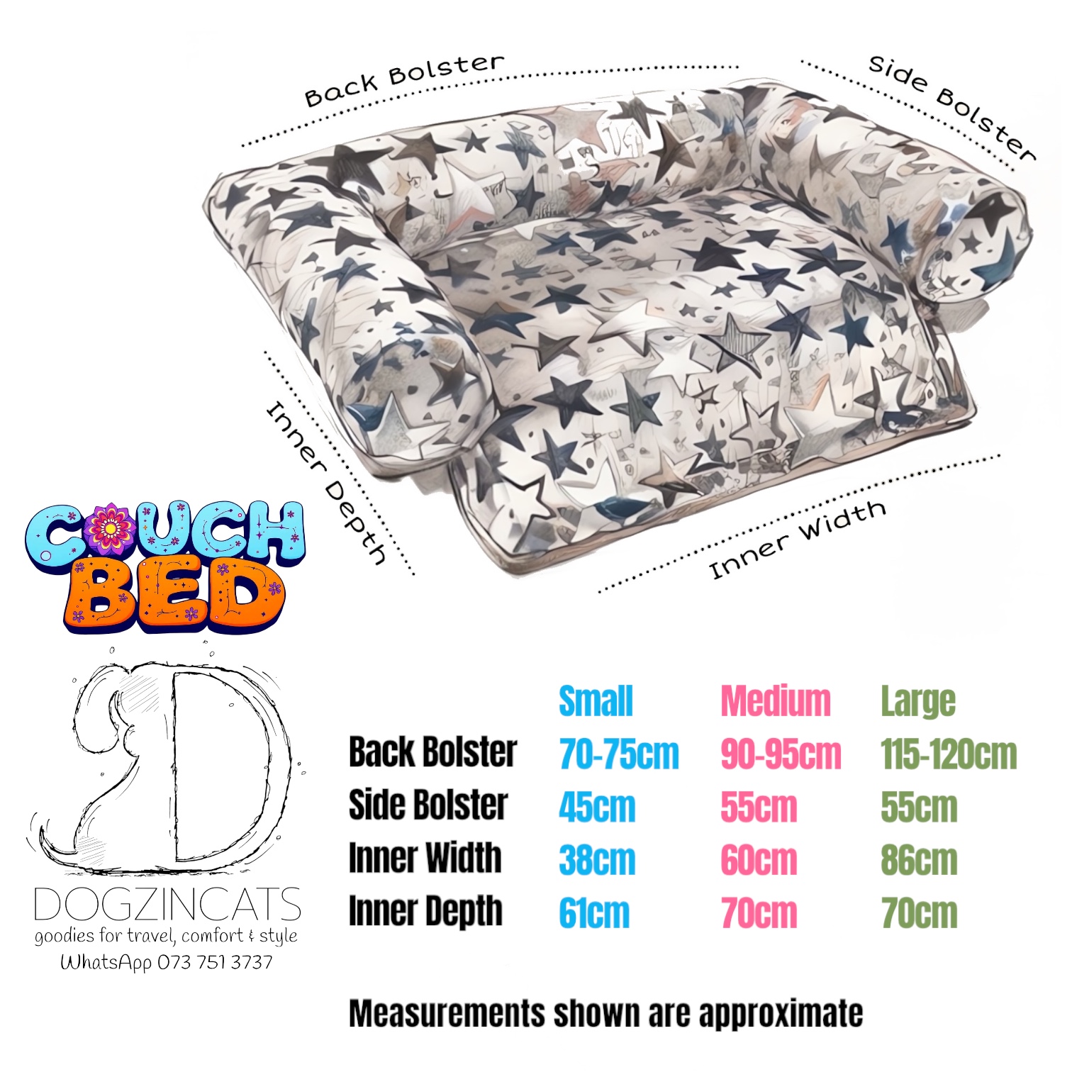 ** Make sure you measure your pet against the measurements we have provided for the beds in this catalogue before ordering a product. Also make sure you know the average size that your pet will reach once fully grown as this will help in judging the size bed it will need at a later stage.