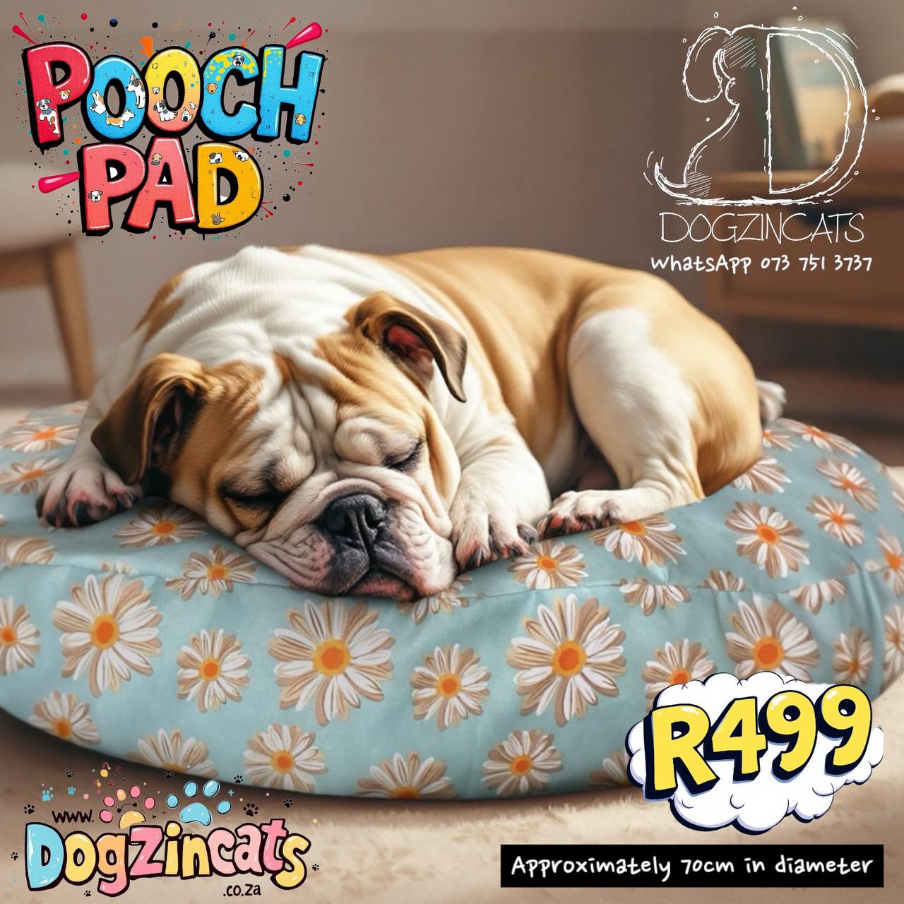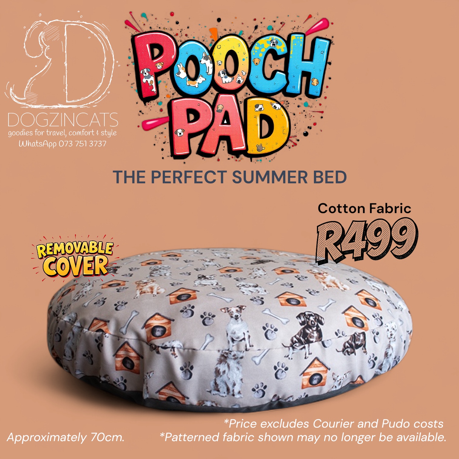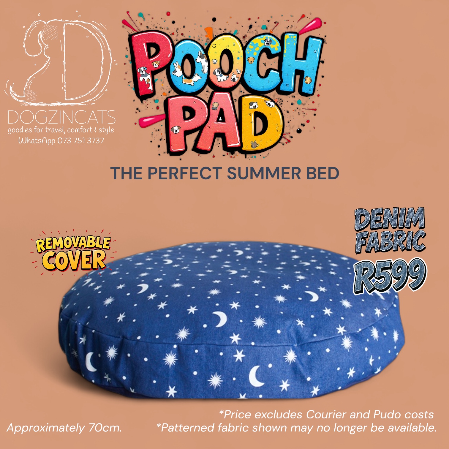 For the pooches who prefer lounging over digging, we’ve got just the thing! Perfect for keeping your furry friend stylish and comfortable. It’s the ultimate summer bed for the dog who loves to keep it chill! Made in mini-matt fabric. It has a removable inner cushion making washing the cover a breeze. Approximately 70cm across.